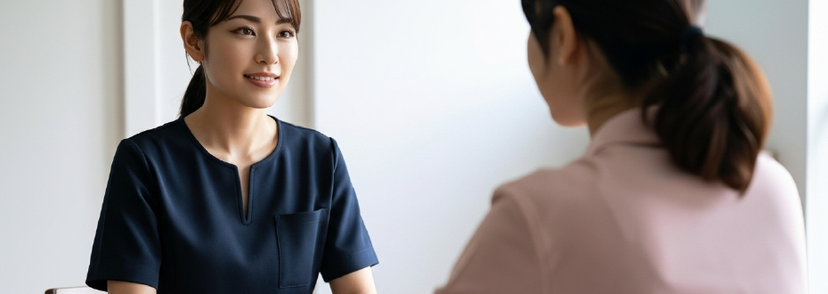 美容医療が初めての方も、安心してご来院ください。患者様のお悩みを丁寧に伺い、納得いただけるまでしっかりとご説明いたします。私たちは、あなたの美しさと自信を引き出す『鍵』になることをお約束します。